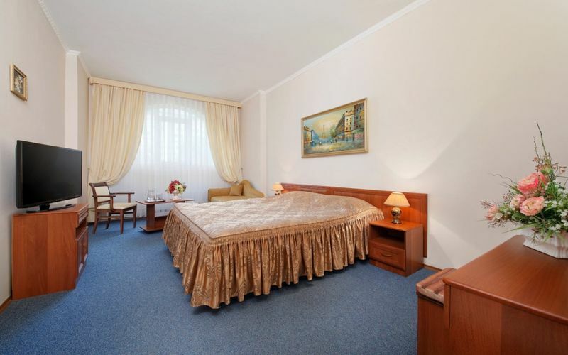 В номере: 2 телевизора, кондиционер, гладильная доска и утюг, холодильник, электрочайник, фен. Все условия для длительного и комфортного пребывания в санатории.